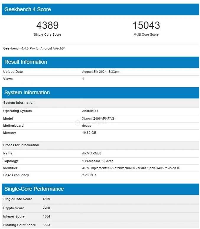 小米 14T 出現(xiàn)在 Geekbench 上,配備天璣8300 Ultra 和 12GB RAM
